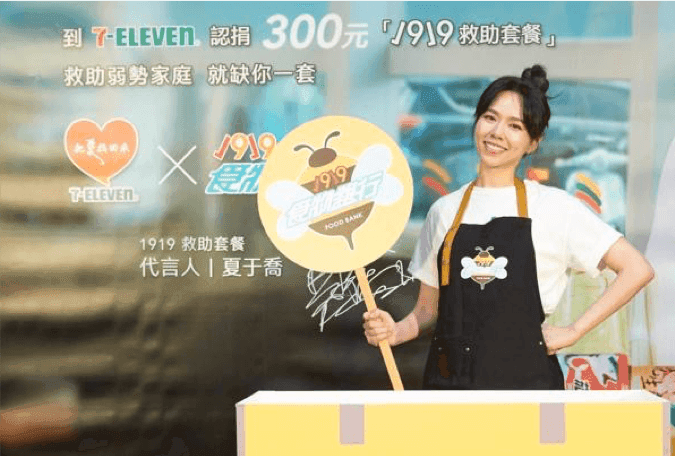 1919食物銀行連續第6年與「7-Eleven把愛找回來」公益服務平台合作,發起「食食來相助,餐餐有飯吃-1919救助套餐」勸募行動。喬喬現場也公開了自己十幾年前就曾認養一位住在中亞吉爾吉斯的小女孩,甚至還曾去探望過她。「現在她已經快20歲了,每年都會寄卡片給我。記得當年我到她家時,看到他們一家五口擠在一個小房子裡,真的只能用家徒四壁來形容。但她還是很積極,很樂觀。她那無私照顧弟妹的畫面,那份手足之愛,讓我感動至今。」